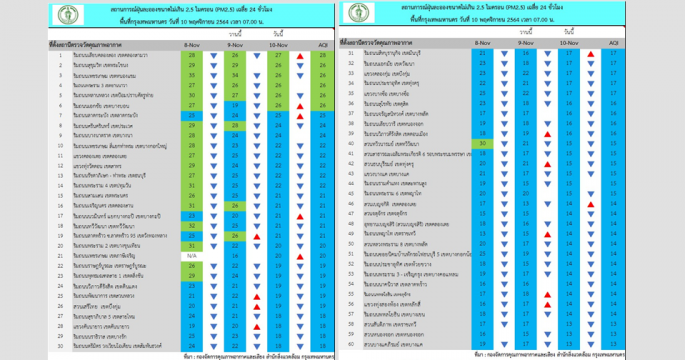 กทม. 10 พ.ย.-ค่าฝุ่นเมืองกรุงวันนี้ยังอยู่ในเกณฑ์มาตรฐานทุกพื้นที่ที่มีการตรวจวัด ส่วนอากาศเย็นมาแล้ว ศูนย์ประสานงานและแก้ไขปัญหามลพิษทางอากาศในกรุงเทพมหานคร รายงานสถานการณ์ฝุ่นละอองขนาดไม่เกิน 2.5 ไมครอน(PM 2.5) ของสถานีตรวจวัดคุณภาพอากาศของกรุงเทพมหานคร ประจำวันพุธที่ 10 พฤศจิกายน พ.ศ. 2564 เวลา 07.00 น. ค่าเฉลี่ย 24 ชั่วโมงของฝุ่นละอองขนาดไม่เกิน 2.5 ไมครอน (PM2.5) ตรวจวัดได้ 10-27 ไมโครกรัม/ลูกบาศก์เมตร (มคก./ลบ.ม.) พบว่าไม่เกินมาตรฐานทุกพื้นที่ที่มีการตรวจวัด (มาตรฐานไม่เกิน 50 มคก./ลบ.ม.) ดัชนีคุณภาพอากาศของสถานีตรวจวัดของกรุงเทพมหานคร ส่วนใหญ่อยู่ในระดับคุณภาพอากาศดีมาก พยากรณ์อากาศ กรุงเทพมหานครและปริมณฑล อากาศเย็นกับมีลมแรง อุณหภูมิจะลดลง 1-2 องศาเซลเซียส อุณหภูมิต่ำสุด 22-23 องศาเซลเซียส อุณหภูมิสูงสุด 30-32 องศาเซลเซียส ลมตะวันออกเฉียงเหนือ ความเร็ว 10-25 กิโลเมตรต่อชั่วโมง .-สำนักข่าวไทย