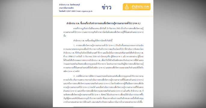 สำนักงาน ก.พ. 26 ก.ย.-สำนักงาน ก.พ.ชี้แจงข่าวคลาดเคลื่อน การสอบภาค ก.แล้วสามารถเข้ารับราชการได้เลย ตามที่ปรากฏเป็นข่าวในสื่อมวลชน เมื่อวันที่ 25 กันยายน 2563 เกี่ยวกับการสอบเพื่อวัดความรู้ความสามารถทั่วไป (ภาค ก.) และการบรรจุเป็นข้าราชการโดยไม่ต้องสอบเพื่อวัดความรู้ที่ใช้เฉพาะตำแหน่ง (ภาค ข.) นั้น สำนักงาน ก.พ. ขอชี้แจงข้อมูลให้ทราบโดยทั่วกันดังนี้ 1.การสอบเพื่อวัดความรู้ความสามารถทั่วไป (ภาค ก.) ถือเป็นขั้นตอนแรกของการประเมินความเหมาะสมของบุคคลเพื่อเข้ารับราชการเป็นข้าราชการพลเรือนโดยทั่วไป ที่ดำเนินการจัดสอบโดยสำนักงาน ก.พ. ซึ่งปัจจุบันยังคงใช้หลักเกณฑ์ วิธีการ และเงื่อนไขในการสอบแข่งขันตามหนังสือสำนักงาน ก.พ. ที่ นร 1004/ว17 ลงวันที่ 11 ธันวาคม 2556กล่าวโดยสรุปคือ ผู้ที่สอบภาค ก. แล้ว หากสอบผ่าน ผู้นั้นจะได้รับหนังสือรับรองผลการสอบจากสำนักงาน ก.พ. เพื่อนำไปใช้สำหรับสมัครสอบกับส่วนราชการที่มีตำแหน่งว่างและประสงค์จะเปิดสอบเพื่อบรรจุบุคคลเข้ารับราชการ โดยส่วนราชการจะเป็นผู้จัดการสอบเพื่อวัดความรู้ความสามารถที่ใช้เฉพาะตำแหน่งที่เปิดรับสมัคร (ภาค ข.) และสอบเพื่อวัดความเหมาะสมกับตำแหน่งที่เปิดรับสมัคร (ภาค ค.) ต่อไป 2.กรณีที่ส่วนราชการมีอัตราว่างและประสงค์จะสอบแข่งขันเพื่อบรรจุบุคคลเข้ารับราชการตามความจำเป็น เป็นการเฉพาะ […]