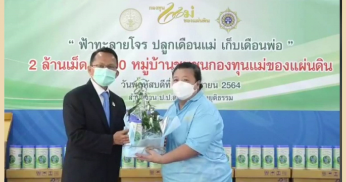 ป.ป.ส. 23 ก.ย.-รมว.ยุติธรรม เปิดตัวโครงการ“ฟ้าทะลายโจร ปลูกเดือนแม่ เก็บเดือนพ่อ”ส่ งเสริมปลูก 12 ล้านต้น 2ล้านเม็ด 2,000 หมู่บ้านกองทุนแม่ นายสมศักดิ์ เทพสุทิน รัฐมนตรีว่าการกระทรวงยุติธรรม เป็นประธานเปิดโครงการ “ฟ้าทะลายโจร ปลูกเดือนแม่ เก็บเดือนพ่อ”2 ล้านเม็ด 2,000 หมู่บ้านชุมชนกองทุนแม่ของแผ่นดิน และมอบยาเม็ดฟ้าทะลายโจรแก่หมู่บ้านชุมชนกองทุนแม่ของแผ่นดิน วันนี้ (23 ก.ย.) ที่สำนักงานคณะกรรมการป้องกันและปราบปรามยาเสพติด (ป.ป.ส.) โดยมีประธานเครือข่ายกองทุนแม่ของแผ่นดินจำนวน 10 เครือข่าย ในกรุงเทพฯ เข้าร่วม รมว.ยุติธรรม กล่าวว่า โครงการ “ฟ้าทะลายโจร ปลูกเดือนแม่ เก็บเดือนพ่อ” ในหมู่บ้านเครือข่ายกองทุนแม่ของแผ่นดินทั่วประเทศ เป็นการส่งเสริมการปลูกพืชสมุนไพรฟ้าทะลายโจร จำนวน 12 ล้านต้น และผลิตยาเม็ดฟ้าทะลายโจรจากเครื่องอัดเม็ดยาบ้า ภายใต้การควบคุมการผลิตโดยทัณฑสถานโรงพยาบาลราชทัณฑ์ ซึ่ง มีแผนการแจกจ่ายให้แก่หมู่บ้านชุมชนกองทุนแม่ของแผ่นดิน 2,000 หมู่บ้าน รวมจำนวนทั้งสิ้น 2 ล้านเม็ด ซึ่งในขณะนี้ สามารถผลิตได้แล้วกว่า […]