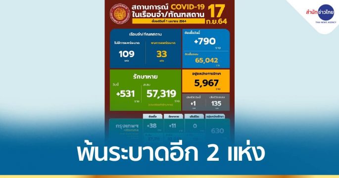 กรมราชทัณฑ์ 17 ก.ย.-กรมราชทัณฑ์ รายงานสถานการณ์โควิด-19 ประจำวัน มีเรือนจำพ้นจากการระบาดเพิ่ม 2 แห่งวันนี้ นายอายุตม์ สินธพพันธุ์ อธิบดีกรมราชทัณฑ์ เปิดเผยถึงสถานการณ์การแพร่ระบาดของโรคติดเชื้อไวรัสโควิด-19 ในเรือนจำและทัณฑสถาน ข้อมูล ณ วันที่ 16 ก.ย.64 เวลา 16.00 น.พบผู้ติดเชื้อรายใหม่ 790 ราย (พบในเรือนจำสีแดง 676 ราย และพบในห้องแยกกักโรคผู้ต้องขังรับใหม่ 114 ราย) รักษาหายเพิ่ม 531 ราย เสียชีวิต 1 ราย ทำให้มีผู้ติดเชื้อที่ยังอยู่ในการดูแลของกรมราชทัณฑ์ 5,967 ราย (กลุ่มสีเขียว 83.7% สีเหลือง 16% และสีแดง 0.3%) เป็นพื้นที่กรุงเทพมหานคร 487 ราย (รวมทัณฑสถานโรงพยาบาลราชทัณฑ์) ปริมณฑล 143 ราย และต่างจังหวัด 5,337 ราย นายอายุตม์ […]