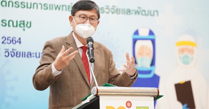 สธ.13 ก.ค.-“เอนก”เสนอรัฐบาลอนุมัติทำศูนย์ปฎิบัติการความปลอดภัยสูงสุดระดับ4 สำหรับทดลองทำวัคซีน ทดลองยา ทดลองการเปลี่ยนแปลงเชื้อหรือพันธุกรรม สู้สงครามเชื้อโรค พร้อมทำห้องไอซียูสัญจรรักษาผู้ป่วยทั่วไทย มอบนวัตกรรม PAPR–ชุดกาวน์กันน้ำ 5 พันชุดแก่ สธ. นายเอนก เหล่าธรรมทัศน์ รัฐมนตรีว่าการกระทรวงการอุดมศึกษา วิทยาศาสตร์ วิจัยและนวัตกรรม (อว.) เป็นประธานส่งมอบนวัตกรรมชุดหน้ากากป้องกันเชื้อโรคแบบคลุมศีรษะพร้อมชุดกรองอากาศประสิทธิภาพสูง (PAPR) และอุปกรณ์ป้องกันส่วนบุคคล ให้กับกระทรวงสาธารณสุข (สธ.) เพื่อรับมือสถานการณ์โควิด-19 มี นพ.สุระ วิเศษศักดิ์ รองปลัด สธ.เป็นผู้รับมอบ รมว.อว.กล่าวว่า กระทรวง อว.กับ สธ. ถือเป็นส่วนหนึ่งของรัฐบาลที่ทำงานร่วมกันเพื่อประชาชนต่อสู้กับโควิด-19 โดย อว.เป็นกองหนุนและมุ่งมุ่นทำงานให้ดีที่สุด ที่ผ่านมา อว. ได้เปิดศูนย์ฉีดวัคซีนและระดมฉีดให้พี่น้องประชาชนไปแล้วกว่า 8 แสนคน และได้ทำโรงพยาบาลสนาม กระจายไปทั่วประเทศ กว่า 12,000 เตียง รับผู้ป่วยมาแล้วกว่า 26,000 คน รักษาจนหายกลับบ้านได้แล้วกว่า 2 หมื่นคน ล่าสุด อว. ได้พัฒนาความเข้มแข็งด้านวิจัยและนวัตกรรมเพื่อรับมือกับโควิด-19 […]