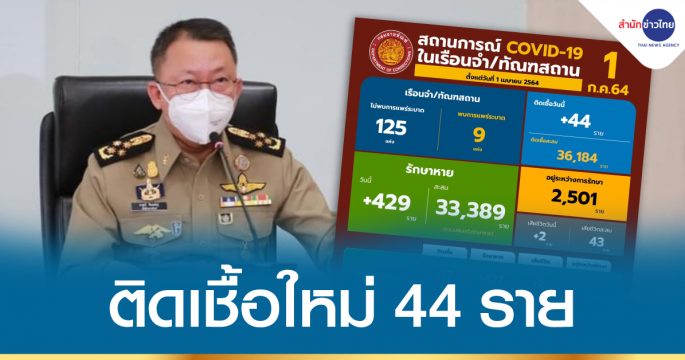 ราชทัณฑ์รายงานสถานการณ์โควิดในเรือนจำ ผู้ต้องขังติดเชื้อรายใหม่ 44 ราย เสียชีวิต 2 ราย ขณะที่วันนี้เป็นวันแรกที่ยอดผู้ติดเชื้อระหว่างรักษาของพื้นที่กรุงเทพฯ ลดลงต่ำกว่า 2 พันราย เร่งคุมเรือนจำที่ยังมีผู้ติดเชื้อใหม่ต่อเนื่อง