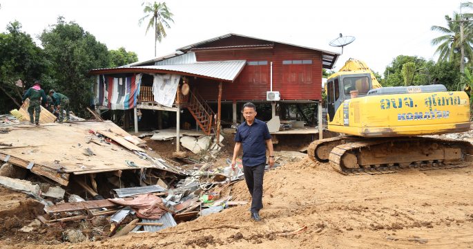 สมศักดิ์ ลงพื้นที่สุโขทัย ตรวจสอบข้อมูลเอาผิดบริษัทรับเหมา หลังปล่อยปละเปิดหน้างานทิ้งไว้ ไม่ทำแนวป้องกันจนน้ำท่วมเสียหาย