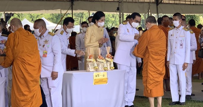 สนามหลวง 28 ก.ค.-นายกฯ นำ ครม. ตักบาตร ถวายเป็นพระราชกุศล วันเฉลิมพระชนมพรรษา พระบาทสมเด็จพระเจ้าอยู่หัว 28 กรกฎาคม 2563 โชว์ฝีมือทำผัดกระเพราไก่ แจกประชาชน