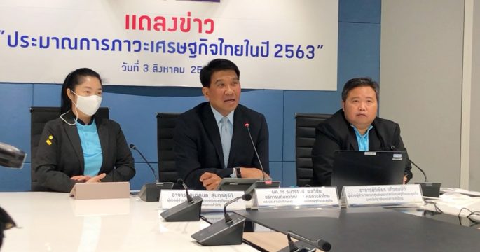 ศูนย์พยากรณ์เศรษฐกิจและธุรกิจ มหาวิทยาลัยหอการค้าไทย ปรับประมาณการเศรษฐกิจไทยปี 63 จะติดลบ 9.4% จากเดือน เม.ย.63 เคยประเมินว่า จะติดลบ 4.9 ถึงติดลบ 3.4% โควิด-19 สร้างความเสียหายต่อเศรษฐกิจไทยสูงสุดเป็นประวัติการณ์ด้วย มูลค่าสูงถึง 2.1 ล้านล้านบาท