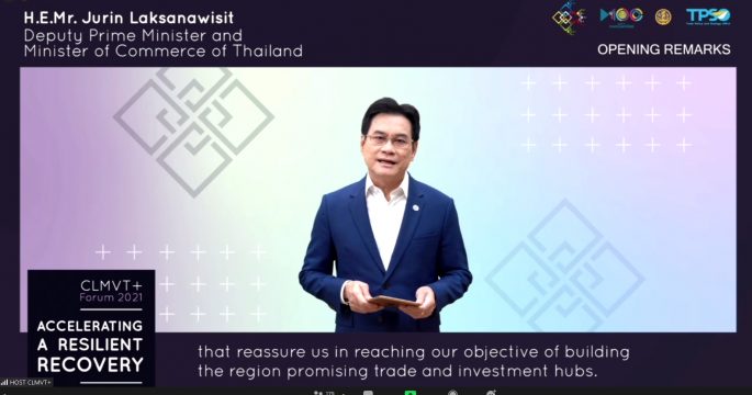 รัฐมนตรีพาณิชย์ใช้เวที CLMVT+ Forum 2021 แนะร่วมกันฟื้นฟูเศรษฐกิจหลังโควิด-19 โดยต้องมีความยืดหยุ่นและมุ่งไปสู่ความยั่งยืนร่วมกันได้