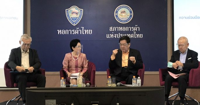 สภาหอการค้าแห่งประเทศไทย จับมือ สำนักงานประกันสังคมและภาคเอกชน ร่วมกันแก้ไขปัญหาโควิด-19 ในพื้นที่จ.สมุทรสาคร โดยเสนอวาระเร่งด่วน 3 ข้อต่อนายกรัฐมนตรี