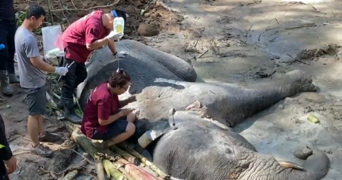 เจ้างาสั้นล้มแล้ว เตรียมส่งตัวอย่างเลือดเพื่อชันสูตรต่อไป