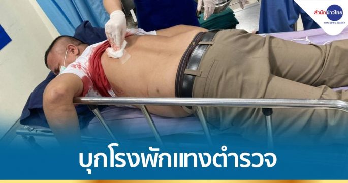 หนุ่มเพี้ยนขี่จักรยานยนต์บุกโรงพักทำลายข้าวของ ชักมีดแทงตำรวจเจ็บ