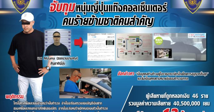 พล.ต.ท.สมพงษ์ ชิงดวง ผบช.สตม. แถลงผลการจับกุมแก๊งคอลเซ็นเตอร์ชาวญี่ปุ่น หลอกผู้เสียหาย 46 ราย รวมมูลค่ากว่า 12 ล้านบาท และใช้ประเทศไทยเป็นที่ซ่อนตัว การจับกุมในครั้งนี้ทางตำรวจตม. 3 ได้ สอดส่องดูพฤติกรรมของชาวต่างชาติที่อยู่ในประเทศไทยอย่างไม่พึงประสงค์ กระทั่ง สังเกตุพบ นายมิซูม่า ชาวญี่ปุ่น อายุ40 ปี เดินทางเข้าไทยด้วยวีซ่านักท่องเที่ยว และตลอด2ปีที่อยู่ในประเทศไทยไม่มีอาชีพเป็นหลักแหล่ง แต่สามารถดำรงชีพได้ เจ้าหน้าที่จึงเข้าไปตรวจสอบ กระทั่งได้รับข้อมูลจากทางการญี่ปุ่นว่านายมิซูม่า เป็นผู้ต้องหาที่กระทำผิดในประเทศญี่ปุ่นร่วมกับเพื่อนอีก 7 คน ลักษณะเป็นแก๊งคอลเซ็นเตอร์ อ้างตัวเป็นตำรวจและโทรไปหาเหยื่อเพื่อขอตรวจสอบบัญชีเงินฝาก โดยใช้วิธีพูดหว่านล้อมจนเหยื่อหลงเชื่อบอกเลขรหัสบัตรบัญชีธนาคาร จากนั้นนายมิซูม่าจะส่งเพื่อนให้ปลอมตัวเป็นตำรวจ ขอเข้าไปตรวจบ้านของเหยื่อและขโมยบัตรกดเงินของเหยื่อ เพื่อนำไปกดเงิน ซึ่งภายหลังก่อเหตุแก๊งคอลเซ็นเตอร์ แก๊งนี้ ถูกจับกุมได้ 7 คน ส่วนนายมิซูม่า ได้หลบหนีเข้าประเทศไทยและพักอาศัยที่คอนโดแห่งหนึ่งในเมืองพัทยา จังหวัดชลบุรี กระทั่งถูกเจ้าหน้าที่จับกุมดำเนินคดี ในข้อหาเป็นบุคคลต่างด้าวอยู่ในราชอาณาจักรโดยการอนุญาตสิ้นสุด และถูกส่งตัวกลับไปดำเนินคดีที่ประเทศญี่ปุ่น สำหรับแก๊งคอลเซ็นเตอร์แก๊งนี้ได้ร่วมกันก่อเหตุในประเทศญี่ปุ่นทั้งสิ้น 113 คดี มีผู้เสียหายที่ถูกหลอกเอาเงิน 46 ราย รวมราคามูลความเสียหาย 40,5000,000เยน หรือประมาณ […]