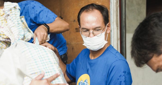 พรรคกล้าร่วมภาคเอกชน จิตอาสามอบข้าว 2 พันกิโลกรัมให้ไปทำข้าวกล่องแจกรพ.สนาม