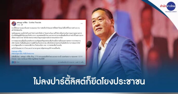 “เศรษฐา” แจงไม่ลง ส.ส. บัญชีรายชื่อ ก็ยึดโยงประชาชน พร้อมทำงานเดินหน้าในสภาอย่างเต็มที่ ระบุหากเป็นแคนดิเดตนายกฯ ก็มาจากประชาชนร่วมกันเลือก