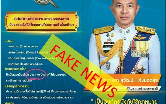 โฆษก ตร. แจงแผ่นพับของสำนักงานตำรวจแห่งชาติ ที่ปรากฏชื่อ ผบ.ตร. และวิสัยทัศน์ พบว่าเป็นเอกสารที่ไม่เป็นความจริง