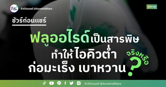 บนสื่อสังคมออนไลน์แชร์คำเตือนเกี่ยวกับ “ฟลูออไรด์” ที่คุ้นเคยกันว่าอยู่ในยาสีฟันหลายชนิด เป็นพิษต่อร่างกาย ส่งผลต่อระบบประสาท ทำให้ไอคิวต่ำ และเป็นโรคต่าง ๆ หลายโรค เรื่องนี้จริงหรือไม่ ? 🎯 ตรวจสอบข้อเท็จจริงและคำแนะนำจากผู้เชี่ยวชาญ รศ.ทพญ.ดร.วลีรัตน์ ศุกรวรรณ ภาควิชาทันตกรรมสำหรับเด็ก คณะทันตแพทยศาสตร์ จุฬาลงกรณ์มหาวิทยาลัย ที่แชร์กันว่า “ฟลูออไรด์” คือสารเคมีเป็นพิษ เรื่องนี้ “ไม่เป็นความจริง” ในชีวิตประจำวันมีการใช้ฟลูออไรด์ถือว่าอยู่ในระดับที่ปลอดภัย และมีประโยชน์มากกว่าโทษ “ฟลูออไรด์” สามารถพบได้ทั่วไป ทั้งในอากาศ ดิน หิน หรือน้ำ โดยเฉพาะจากแหล่งน้ำธรรมชาติ นอกจากนี้ อาหาร พืชผัก ผลไม้บางชนิด ก็มีฟลูออไรด์เป็นองค์ประกอบอยู่ในนั้น ความเป็นพิษของฟลูออไรด์ จะเกิดขึ้นได้ก็ต่อเมื่อรับปริมาณมาก ๆ หรือปริมาณสูงอย่างต่อเนื่อง สะสมเป็นระยะเวลายาวนาน ฟลูออไรด์ทำให้ไอคิวต่ำและเกิดอีกหลายโรค จริงหรือไม่ ? การได้รับฟลูออไรด์กับระดับไอคิว หรือความสามารถในการเรียนรู้ของเด็ก เรื่องนี้ไม่พบความสัมพันธ์และไม่เกี่ยวข้องกันเลย การได้รับฟลูออไรด์ก็ไม่มีความสัมพันธ์กับการเกิดโรค ไม่ว่าจะเป็นโรคมะเร็ง โรคเบาหวาน หรือโรคต่อมไร้ท่ออื่น ๆ นอกจากนี้ ที่มีการอ้างอิงงานวิจัยเกี่ยวกับฟลูออไรด์นั้น […]