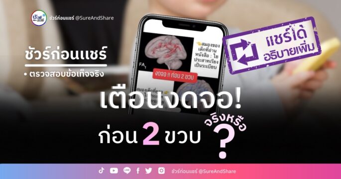 🎯 บนสื่อสังคมออนไลน์ มีการแชร์ภาพและคำเตือนว่า หลายผลเสียจากการติดจอ จริงหรือ ? 📌 บทสรุป : ✅ ชัวร์ แชร์ได้ มีคำอธิบายเพิ่มเติม ✅ 👉 ศูนย์ชัวร์ก่อนแชร์ตรวจสอบกับผู้เชี่ยวชาญ ศ.นพ.วีระศักดิ์ ชลไชยะ หัวหน้าศูนย์เชี่ยวชาญเฉพาะทางเพื่อพัฒนาศักยภาพเด็ก ภาควิชากุมารเวชศาสตร์ คณะแพทยศาสตร์ จุฬาลงกรณ์มหาวิทยาลัย กรณีที่สื่อสังคมออนไลน์มีการเตือนความเสี่ยงหลายอย่างจากการติดจอ เช่น โมโหร้าย สมาธิสั้น ไปจนถึงเจ้าอารมณ์ พัฒนาการช้านั้น มีความจริงในบางส่วน เรื่องพฤติกรรม เช่น ซน สมาธิสั้น การควบคุมตัวเองไม่ได้ โมโห หงุดหงิด มีข้อมูลว่าความสัมพันธ์เหล่านี้เกิดขึ้นร่วมด้วย การใช้สื่อที่ไม่เหมาะสมอาจจะส่งผลต่อการเรียนได้ เด็กใช้สื่อหน้าจอไม่สามารถกำกับควบคุมตัวเองได้ และทำงานที่ได้รับมอบหมายจากโรงเรียนไม่สำเร็จ นอกจากนี้ ส่งผลด้านร่างกายด้วย ข้อมูลการศึกษาช่วงล็อกดาวน์พบว่ามีผลต่อการใช้สื่อหน้าจอมาก เรื่องภาวะสายตาสั้น ส่วนคนที่สายตาสั้นอยู่แล้วแนวโน้มสายตาสั้นเพิ่มมากขึ้น โรคทางกายอื่น ๆ เช่น โรคอ้วน มีข้อมูลมานานแล้ว ซึ่งเป็นลักษณะพฤติกรรมเนือยนิ่ง ทำให้เด็กขาดโอกาสเคลื่อนไหวร่างกาย รวมไปถึงปัญหาการนอน ถ้าใช้สื่อหน้าจอที่ไม่เหมาะสม จะสัมพันธ์กับปัญหาการนอนมากขึ้น […]