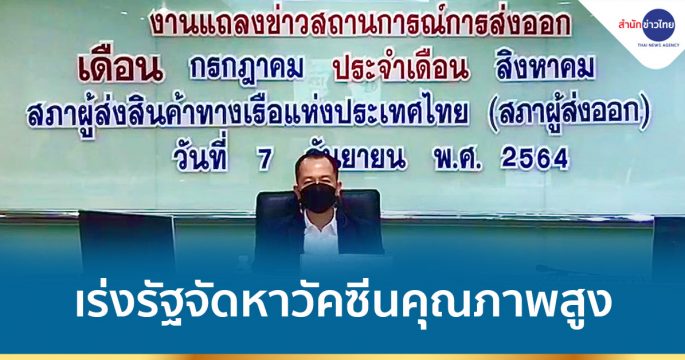 ประธานสภาผู้ส่งสินค้าทางเรือแห่งประเทศไทยเผยเร่งรัฐจัดหาวัคซีนคุณภาพสูง สนับสนุนค่าใช้จ่ายคลัสเตอร์ส่งออก เดินหน้าภาคเศรษฐกิจไทย