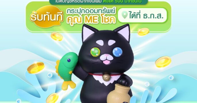 ธนาคารเพื่อการเกษตรและสหกรณ์การเกษตร (ธ.ก.ส.) เปิดตัวคุณ ME โชค กระปุกออมทรัพย์ ธ.ก.ส. แมวดำจับปลาใส่ข้องไม้ไผ่ในซีรีส์ ME Story เนื่องในโอกาสวันเด็กแห่งชาติ 2567 ที่สื่อถึงวัยเด็กที่ซุกซน แข็งแรง สดใส และชอบวิ่งเล่นจับปลาในท้องทุ่งนา พร้อมสร้างเสริมนิสัยการออมเงินในเด็กและเยาวชนผ่านการฝากเงินในแคมเปญเงินฝากวันเด็กแห่งชาติ Kids D 2567 เพียงเปิดบัญชีใหม่หรือฝากเงินเพิ่มเข้าบัญชีเงินฝากเดิม ตั้งแต่ 500 บาทขึ้นไป ในระหว่างวันที่ 12 – 16 มกราคม 2567 ผ่านเคาน์เตอร์ ธ.ก.ส. ทุกสาขาทั่วประเทศ รับทันที ! กระปุกออมทรัพย์ ธ.ก.ส. คุณ ME โชค (จำกัดสิทธิ์ 1 บัญชีต่อ 1 ราย) สอบถามข้อมูลเพิ่มเติมได้ที่ ธ.ก.ส. ทุกสาขาหรือ Call Center 02 555 0555 ได้.-515-สำนักข่าวไทย