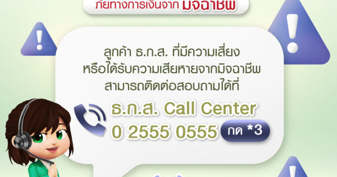 ธ.ก.ส. ยกเลิกการส่งข้อความ SMS แนบลิงก์ ย้ำลูกค้าระวังมิจฉาชีพหลอกลวงให้คลิกลิงก์ เพื่อโจรกรรมข้อมูล พร้อมเปิดศูนย์รับแจ้งเหตุภัยทางการเงินตลอด 24 ชั่วโมง