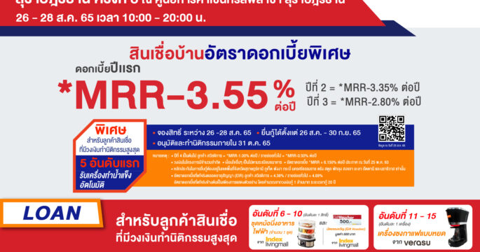 ธอส. ลงใต้คัดโปรเด็ดสินเชื่อบ้าน ดอกเบี้ยคงที่ปีแรก 2.60% ต่อปี ที่งาน “Thailand Smart Money สุราษฎร์ธานี ครั้งที่ 8”