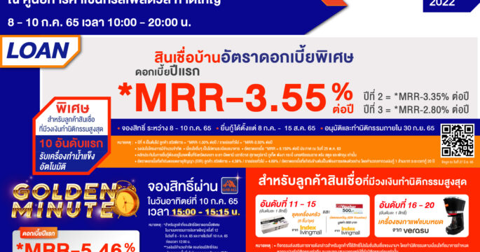 ธอส. ขน 4 โปรเด็ดเอาใจชาวใต้ สินเชื่อบ้านดอกเบี้ยปีแรกเพียง 2.60% ต่อปี พร้อมดอกเบี้ยต่ำพิเศษช่วง Golden Minute ในงาน Money Expo Hatyai 2022