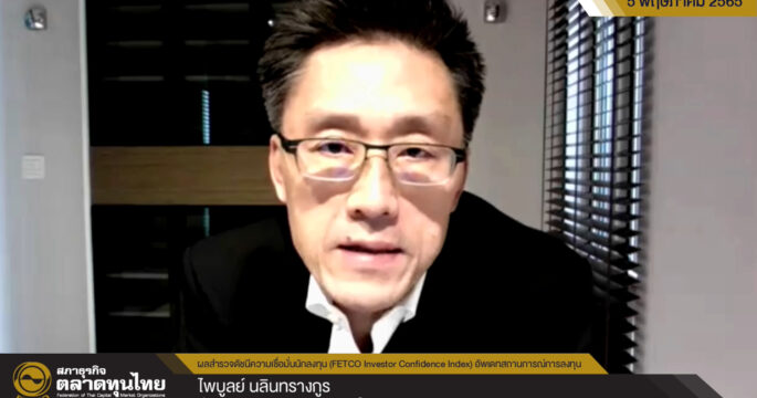 ประธานกรรมการสภาธุรกิจตลาดทุนไทยระบุผลสำรวจดัชนีความเชื่อมั่นนักลงทุนอยู่ในเกณฑ์ทรงตัวต่อเนื่องเป็นเดือนที่ 4 โดยนักลงทุนคาดหวังท่องเที่ยวฟื้นตัว และ เงินทุนไหลเข้า ช่วยหนุนความเชื่อมั่น ขณะที่ปัจจัยฉุดคือความกังวลต่อสถานการณ์ รัสเซีย—ยูเครน และนโยบายดอกเบี้ย FED และส่งจดหมายเปิดผนึกถึง รมว.คลังค้านเรียกเก็บภาษีการขายหุ้นใน ตลท.เช้านี้