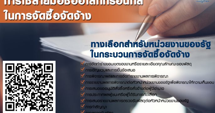 กรมบัญชีกลางออกแนวทางการใช้ลายมือชื่ออิเล็กทรอนิกส์ เป็นทางเลือกให้หน่วยงานของรัฐนำไปใช้ในกระบวนการจัดซื้อจัดจ้าง เพิ่มความคล่องตัว ลดขั้นตอน สะดวกและรวดเร็ว