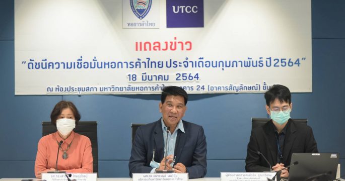 ดัชนีความเชื่อมั่นภาคธุรกิจในเดือนกุมภาพันธ์ลดลงเล็กน้อย โดยสะท้อนจากสมาชิกขอบหอการค้าไทยทั่วประเทศ ตามความกังวลต่อการระบาดของโควิดรอบใหม่และเหตุการณ์ชุมนุมทางการเมือง