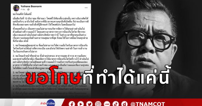 “ป๋าเต็ด” ยุทธนา บุญอ้อม โพสต์ขอโทษ ที่ทำให้ผิดหวัง ไม่สามารถทำให้ Big Mountain Music Festival ครั้งที่ 11 ออกมาดีอย่างที่ทุกฝ่ายตั้งใจ ช่วงนี้ขอหายไปสักพัก ทบทวนอะไรหลายๆ อย่างในชีวิต