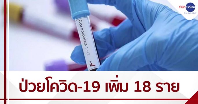 สถานการณ์การติดเชื้อ COVID-19 ประเทศไทย มีผู้ป่วยรายใหม่ 18 ราย ผู้ป่วยยืนยันสะสม 4,026 ราย หายป่วยแล้ว 3,822 ราย เสียชีวิตสะสม 60 ราย