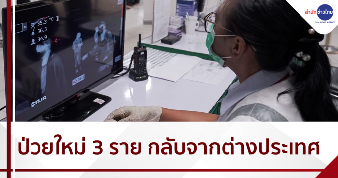 สถานการณ์การติดเชื้อ COVID-19 ในประเทศไทยพบผู้ป่วยรายใหม่ 3 ราย เป็นคนไทยเดินทางมาจากซาอุฯ-อินโดนีเซีย และเข้าพัก State Quarantine ผู้ป่วยยืนยันสะสม 3,348 ราย หายป่วยแล้ว 3,150 ราย เสียชีวิตสะสม 58 ราย