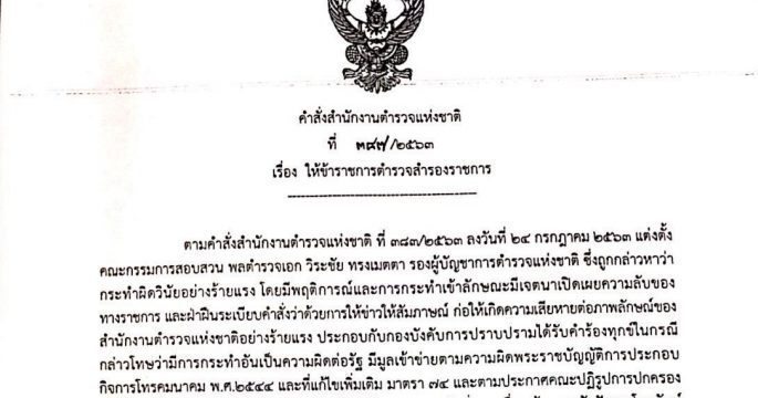 “บิ๊กแป๊ะ” สั่งสำรองราชการ “วิระชัยW ปมปล่อยคลิปเสียงคดียิงรถบิ๊กโจ๊ก