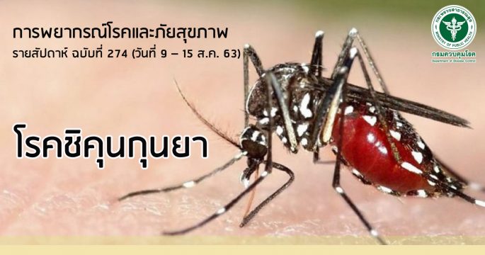 พบผู้ป่วยโรคไข้ปวดข้อยุงลาย หรือโรคชิคุนกุนยาแล้ว 5,728 ราย จาก 65 จังหวัด ไม่มีผู้เสียชีวิต จังหวัดที่มีอัตราป่วยสูงสุด 5 อันดับแรก คือ จันทบุรี อุทัยธานี ลำพูน เลย และตราด