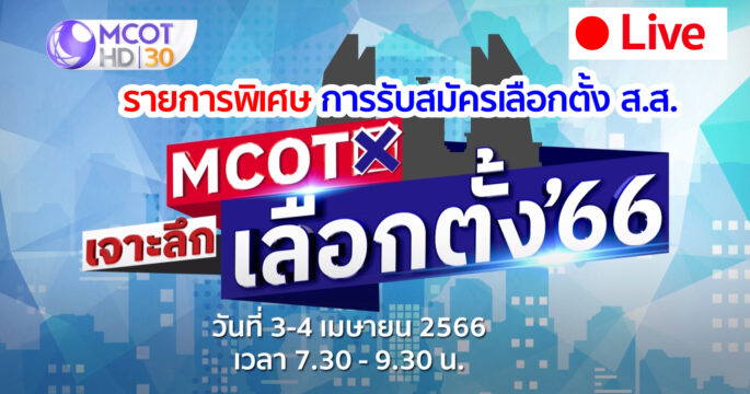 อนาคตประเทศไทยกับการเลือกตั้งครั้งประวัติศาสตร์!MCOT เจาะลึกเลือกตั้ง’66 ระดมทีมมืออาชีพ ทั้งเบื้องหลังเบื้องหน้าติดตามรายการพิเศษ รับสมัครเลือกตั้ง ส.ส.วันที่ 3-4 เมษายน นี้ 07.30 น. เป็นต้นไป