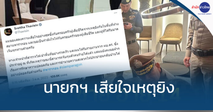 นายกรัฐมนตรี โพสต์ผ่าน X (ทวิตเตอร์) แสดงความเสียใจอย่างสุดซึ้งกับครอบครัวผู้เสียชีวิตจากเหตุยิงกันในพื้นที่ห้างสยามพารากอน