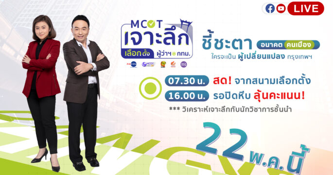 “MCOT เจาะลึกเลือกตั้งผู้ว่าฯ กทม.” 22 พ.ค.65 ชี้ชะตา อนาคต คนเมือง … ใครจะเป็นผู้เปลี่ยนแปลงกรุงเทพฯ
