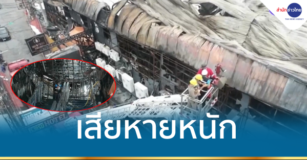 เจ้าหน้าที่กองพิสูจน์หลักฐานขึ้นกระเช้าดับเพลิงขึ้นตรวจดูความเสียหายและเก็บหลักฐานหาจุดต้นเพลิง เหตุไฟไหม้ ร้านอาหารและผับชื่อดัง ถนนคนเดินวอล์กกิ้งสตรีท พัทยาใต้ รวม 4 คูหา