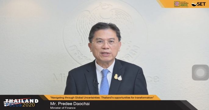 รมว.คลังย้ำกับสถาบันต่างชาติบนเวที Thailand Focus 2020 มั่นใจเศรษฐกิจไทยผ่านจุดต่ำสุดไปแล้ว เชื่อจีดีพีปี 64 จะกลับมาเติบโต 4-5 %
