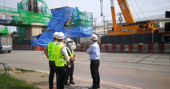 รฟม.ลงพื้นที่ตรวจจุดเกิดเหตุคานรถไฟฟ้าสีชมพูทรุดตัว เบื้องต้นมาจากฝนตกต่อเนื่อง ทำให้สภาพดินที่ตั้งค้ำยันชั่วคราวอ่อนและทรุดตัว