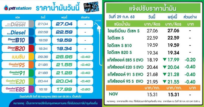 ปตท.-บางจากฯ ลดราคาน้ำมันทุกชนิด 40 สต./ลิตร ยกเว้น E85 ลด 20 สต. ส่วนดีเซลคงเดิม มีผล 30 ก.ค.