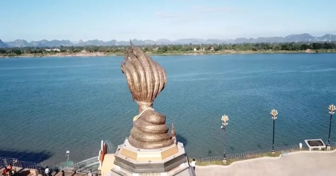 The Mekong River by this northeastern province turned beautifully blue but officials warned it was a sign of danger.