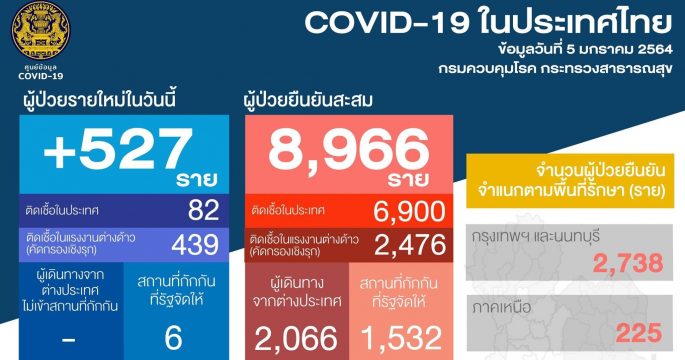 Thailand logged 527 new COVID-19 cases over the past 24 hours, including over 400 migrants.