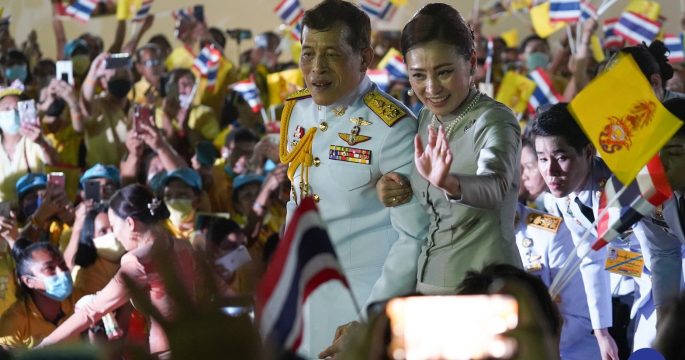 Crowds of people gathered around the Sanam Luang ground next to the Grand Palace to greet Their Majesties the King and Queen.