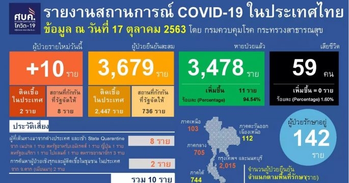 Thailand logged ten more cases of the coronavirus disease 2019 comprising eight arrivals and two Myanmar people who live in Tak province.