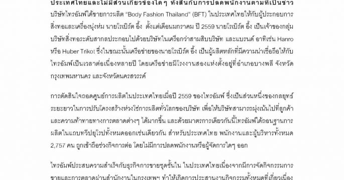 Triumph said it did not own a textile factory that shut down in Nakhon Sawan province and that it had stopped production in Thailand since 2016 when it had sold its factories.