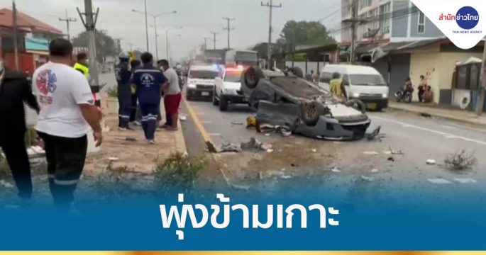 รถเก๋งป้ายแดงเสียหลักพุ่งข้ามเกาะชนเสาไฟฟ้า คนขับเสียชีวิต