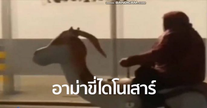 สังคมออนไลน์ที่จีน แห่แชร์คลิปผู้หญิงสูงวัยกำลังขี่ไดโนเสาร์ไปตามถนน