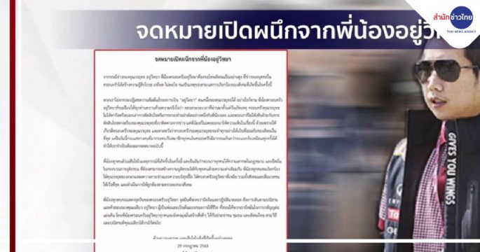 พี่น้องอยู่วิทยา ส่งจดหมายเปิดผนึก ขอโทษสังคม ที่คนในครอบครัวสร้างความรู้สึกโกรธ เกลียด ไม่พอใจ ทุกคนล้วนเสียใจ ยืนยันยึดมั่นในกระบวนการยุติธรรม และขอเรียกร้องให้ “บอส” ออกมาแสดงความกระจ่างและความบริสุทธิ์ใจ