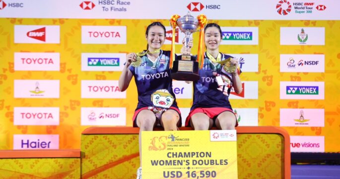 กรุงเทพฯ 4 ก.พ. – แบดมินตันรายการใหญ่ระดับนานาชาติในศึก “ปรินเซส สิริวัณณวรี ไทยแลนด์ มาสเตอร์ส 2024” (Princess Sirivannavari Thailand Masters 2024) ชิงถ้วยพระราชทานสมเด็จพระเจ้าลูกเธอ เจ้าฟ้าสิริวัณณวรี นารีรัตนราชกัญญา ทัวร์นาเมนต์เก็บคะแนนสะสมระดับบีดับเบิลยูเอฟ เวิลด์ทัวร์ ซูเปอร์ 300 ชิงเงินรางวัลรวม 210,000 เหรียญสหรัฐ หรือ ประมาณ 7,240,000 บาท ที่อาคารนิมิบุตร สนามกีฬาแห่งชาติ กรุงเทพมหานคร ประเภทหญิงคู่ รอบชิงชนะเลิศ “อันนา” นันทน์กาญจน์ กับ “มูนา” เบญญาภา เอี่ยมสอาด เจ้าของแชมป์ปี 2023 คู่มือวาง 2 ของรายการ คู่มืออันดับ 13 ของโลก พบกับ หลัว ซูมิง กับ ลี ยี่จิง คู่มืออันดับ 25 ของโลกจากจีน เกมนี้ ทั้งคู่สามารถผลัดกันบุกและทำแต้มได้อย่างสูสีทั้งเกม แต่สุดท้ายเป็นคู่ของ […]