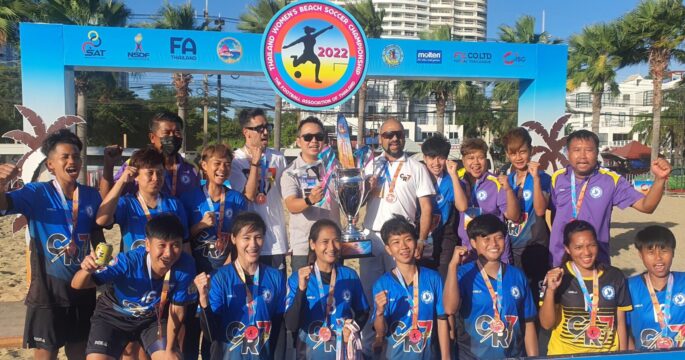 ชลบุรี 4 มิ.ย.65. – ปิดฉากศึกฟุตบอลชายหาด ชิงชนะเลิศแห่งประเทศไทย ที่หาดจอมเทียน พัทยา รอบชิงชนะเลิศ ออสม่า ซีอาร์เซเว่นโกล พบกับ ม.เกษมบันฑิต เอฟซี เปิดฉากเกมมาเพียง 2 นาที ม.เกษมบันฑิต เอฟซี ได้ประตูขึ้นนำเร็ว 1-0 จาก นาตาชา หงวนเสงี่ยม แต่นาทีเดียวกันออสม่า ซีอาร์เซเว่นโกล ไล่ตีเสมอได้แบบทันควัน 1-1 จาก อมรมาศ ทองเกิด ก่อนจะจบพีเรียดแรกไปด้วยสกอร์นี้ พีเรียดที่สอง ออสม่า ซีอาร์เซเว่นโกล ที่ครองบอลโจมตีได้มากกว่ามาพลิกแซงสำเร็จ 2-1 จาก อรพรร บุ้งทอง น.18 ก่อนที่พีเรียดสุดท้าย น.31 อรพรร บุ้งทอง มาบวกเพิ่มให้ออสม่า อีกลูก จบเกม ออสม่า ซีอาร์เซเว่นโกล เอาชนะม.เกษมบันฑิต เอฟซี ไป 3-1 คว้าแชมป์ไปครอง ส่วนผลคู่ชิงอันดับ 3 ม.ปทุมธานี ถล่ม ม.มูรพา 11-2 สรุปอันดับแชมป์ ออสม่า ซีอาร์เซเว่นโกล ,รองแชมป์ ม.เกษมบัณฑิต เอฟซี ,อันดับ 3 ม.ปทุมธานี ,อันดับ 4 ม.บูรพา,อันดับ 5 นาวิก ,อันดับ 6 ประตูน้ำ บีเอสบี โดยพิธีปิดมี พลโท อิสระ วัชรประทีป ที่ปรึกษาผู้ว่าการกีฬาแห่งประเทศไทย และประธานฝ่ายจัดการแข่งขันฯ พร้อมด้วยนาย รัตนชัย สุทธิเดชาชัย ผู้ทรงคุณวุฒิ เมืองพัทยา และนาย ราหูล อิราริวารา เดินทางมาร่วมในพิธีปิด สำหรับรางวัลต่างๆ ผู้รัษาประตูยอดเยี่ยม ได้แก่ วรรณภา ผึ่งผดุง จากทีม ม.เกษมบัณฑิตเอฟซี ,ผู้เล่นยอดเยี่ยม MVP ตกเป็นของ พิมพิไล โชคชัย จากทีมออสม่า ซีอาร์เซเว่นโกล และรางวัลดาวซัลโวสูงสุด ได้แก่ ภัทรบุญ คงประทีปจากทีม ม.ปทุมธานี กดไป 11 ประตู โดยหลังจบเกม “กล้าปีนเกลียว” วันกล้า ขวัญแก้ว ประธานสโมสร ออสม่า ซีอาร์เซเว่นโกล เผยว่า “ต้องขอแสดงความดีใจกับเด็กๆทุกคนที่พยายามกันอย่างเต็มที่ และสู้สุดกำลังจนคว้าแชมป์มาได้ รายการนี้เพิ่งจะได้จัดแข่งขันเป็นครั้งแรกและทุกคนก็คว้าแชมป์ได้สำเร็จ ถือเป็นจุดเริ่มต้นดีที่หลังจากนี้ก็หวังว่าจะได้เห็นผู้เล่นหลายๆ คนของเราได้ต่อยอดในรั้วทีมชาติพัฒนา เพื่อก้าวไปสู่การแข่งขันฟุตบอลชายหาดในเอเชียนบีชเกมส์ ต่อไป”-สำนักข่าวไทย