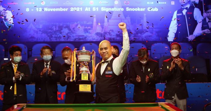 13 พ.ย.64-การแข่งขันสนุ๊กเกอร์อาชีพเก็บสะสมคะแนนปี2564 รายการที่4″อีมิแน้นท์ แอร์ – ทรู กรุงเทพ คัพ”ที่เอสวัน ซิเนเจอร์ สนุ๊กเกอร์ คลับ พุทธมณฑลสาย1 เดินทางมาถึงรอบชิงชนะเลิศ โดยมี พลเอกโชคดี เกตสัมพันธ์ และนายสุนทร จารุมนต์ นายกสมาคมกีฬาบิลเลียดแห่งประเทศไทย เป็นประธาน นัดชิงระบบ 4 ใน 7 เฟรมเป็นการดวลคิวกันระหว่าง “แจ๊ค สระบุรี” เดชาวัต พุ่มแจ้ง อดีตมือโลก และแชมป์จากสนามที่แล้วที่จังหวัดภูเก็ต ดวลกับ “ชิม ศิษย์ต่าย” กอบกิจ พลาจิณ อดีตรองแชมป์เยาวชนโลก ปรากฏว่า ทั้งสองคนต้องสู้กันถึงฏีกา หลังจากเสมอกันดุเดือด 3-3 ก่อนที่ แจ๊ค จะเอาชนะไปได้แบบหืดจับ 4-3 เฟรม ด้วยสกอร์ 38-77, 85-61, 57-7, 33-66, 66-63, 28-61 และ 78-0 […]
